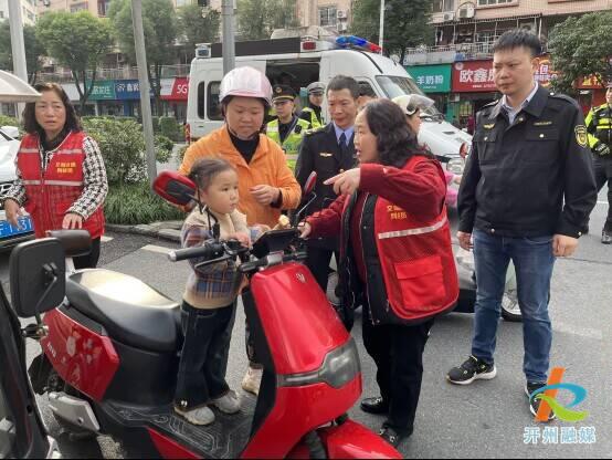 双合店社区网格员拦截来往未佩戴头盔的电动车、摩托车车辆,向驾驶人、乘坐人宣传道路交通安全法,耐心劝导要有“一盔一带 ”的安全意识。