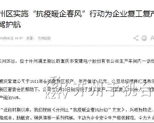 开州区实施“抗疫暖企春风”行动为企业复工复产保驾护航