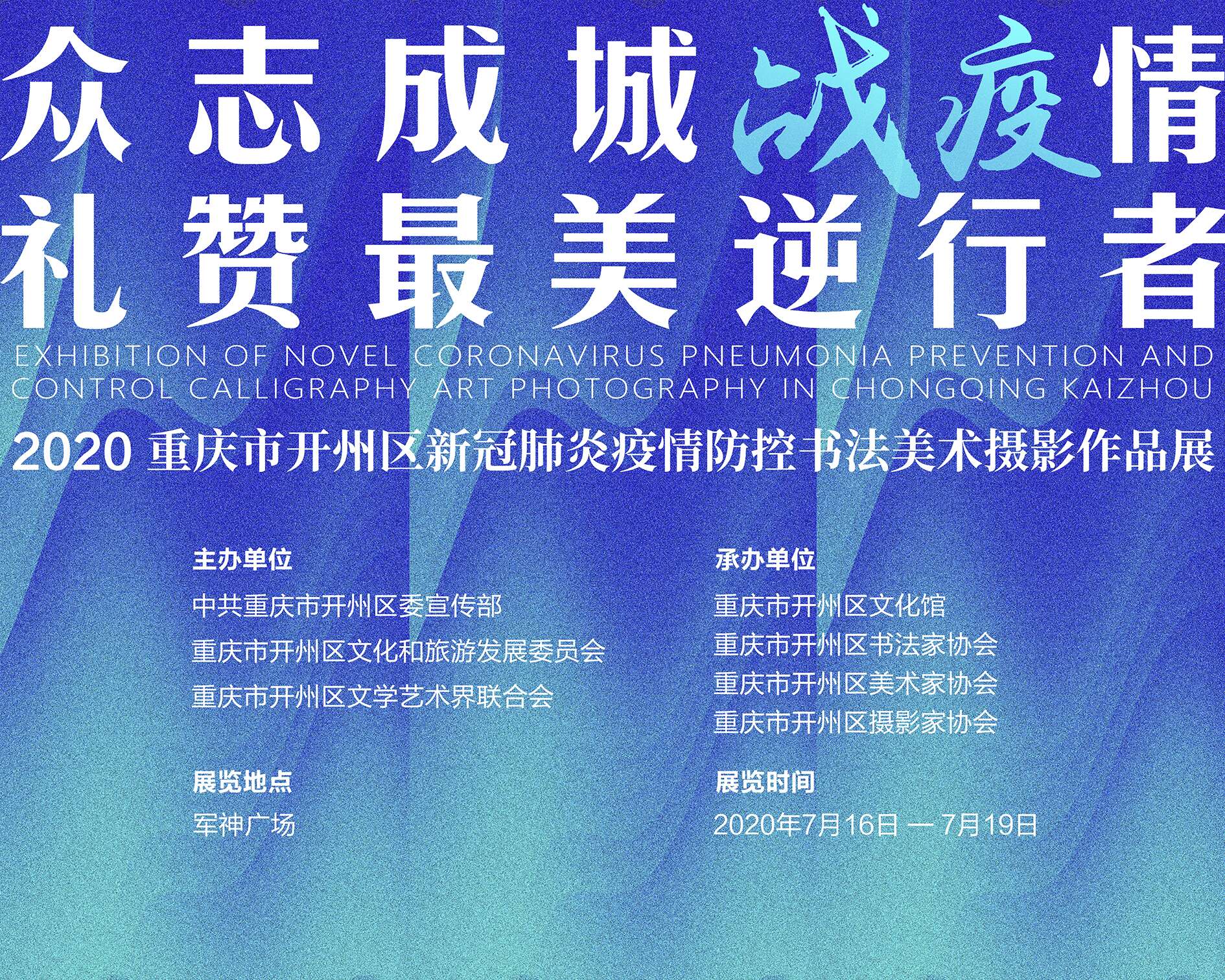向逆行抗疫者致敬! 开州区新冠肺炎疫情防控书法美术摄影作品展7月16日开展!