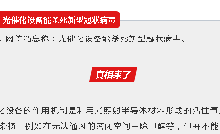 【2020.2.26】谣言,别信!——光催化设备能杀死新型冠状病毒?